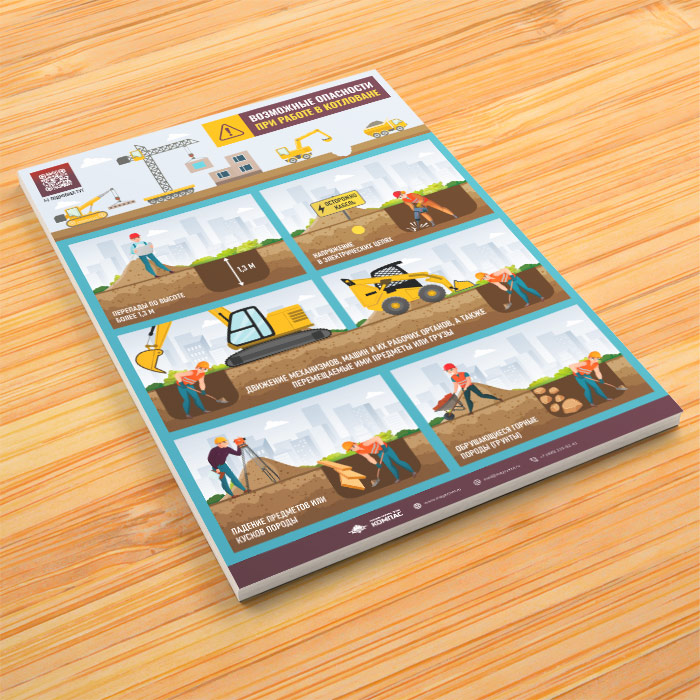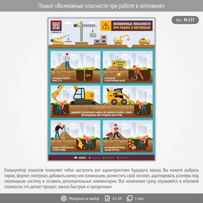 Плакат «Возможные опасности при работе в котловане» с QR (М-137, 1 лист) в Ачинске купить