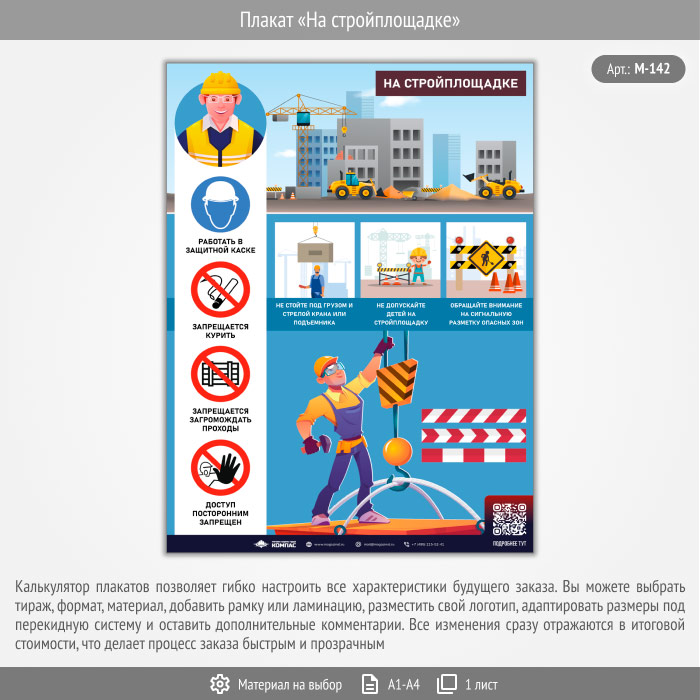 Плакат «На стройплощадке» с QR (М-142, 1 лист) в Ачинске купить