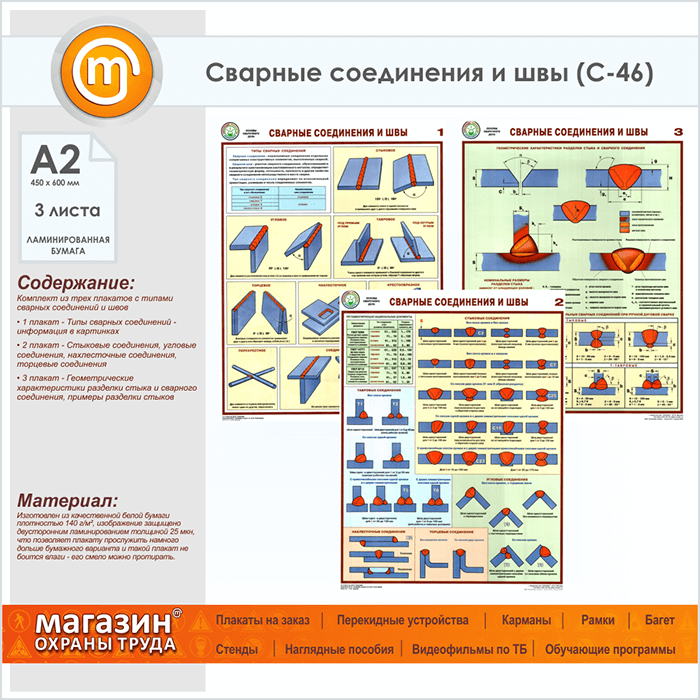 Плакаты «Сварные соединения и швы» (С-46, ламинированная бумага, А2, 3 листа) в Ачинске купить