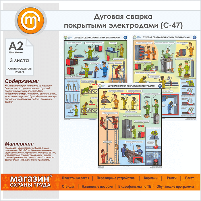 Плакаты «Дуговая сварка покрытыми электродами» (С-47, ламинированная бумага, А2, 3 листа) в Ачинске купить