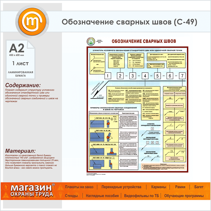 Плакат «Обозначение сварных швов» (С-49, ламинированная бумага, А2, 1 лист) в Ачинске купить