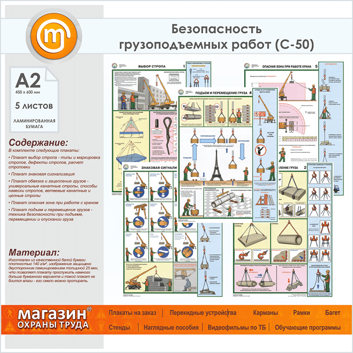 Плакаты «Безопасность грузоподъемных работ» (С-50, ламинированная бумага, А2, 5 листов) в Ачинске купить