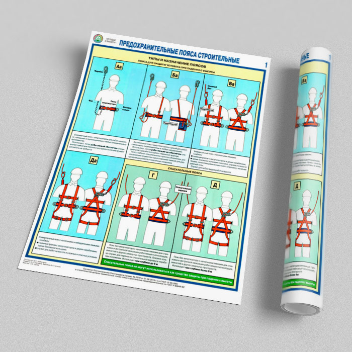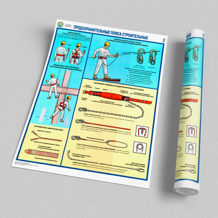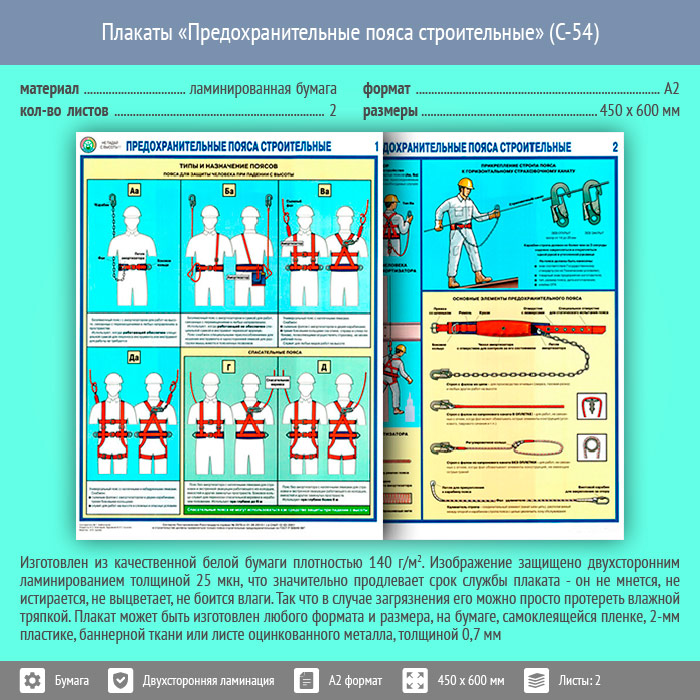 Плакаты «Предохранительные пояса строительные» (С-54, ламинированная бумага, А2, 2 листа) в Ачинске купить