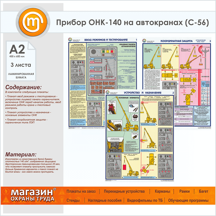 Плакаты «Прибор ОНК-140 на автокранах» (С-56, ламинированная бумага, А2, 3 листа) в Ачинске купить