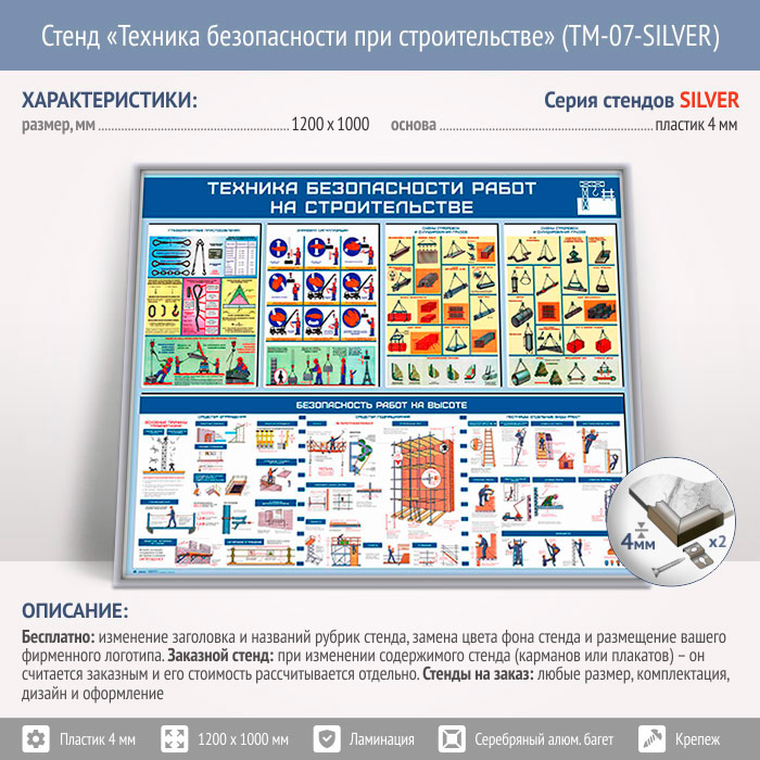 Стенд «Техника безопасности при строительстве» (TM-07-SILVER) в Ачинске купить