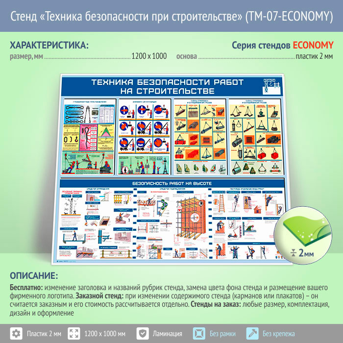 Стенд «Техника безопасности при строительстве» (TM-07-ECONOMY) в Ачинске купить