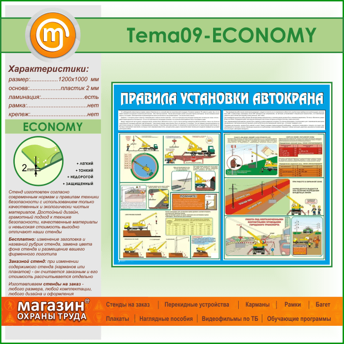 Стенд «Правила установки автокранов» (TM-09-ECONOMY) в Ачинске купить