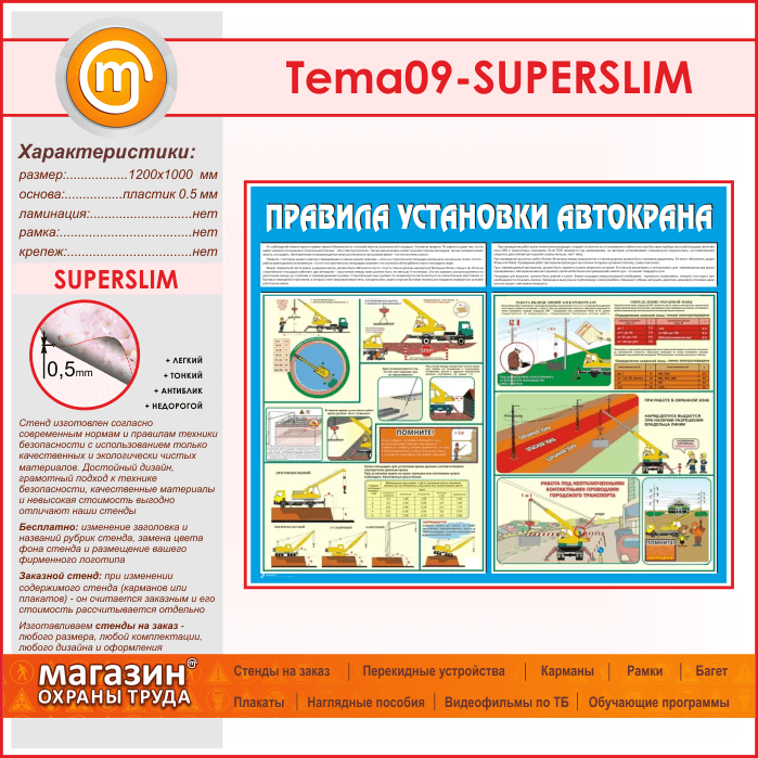 Стенд «Правила установки автокранов» (TM-09-SUPERSLIM) в Ачинске купить
