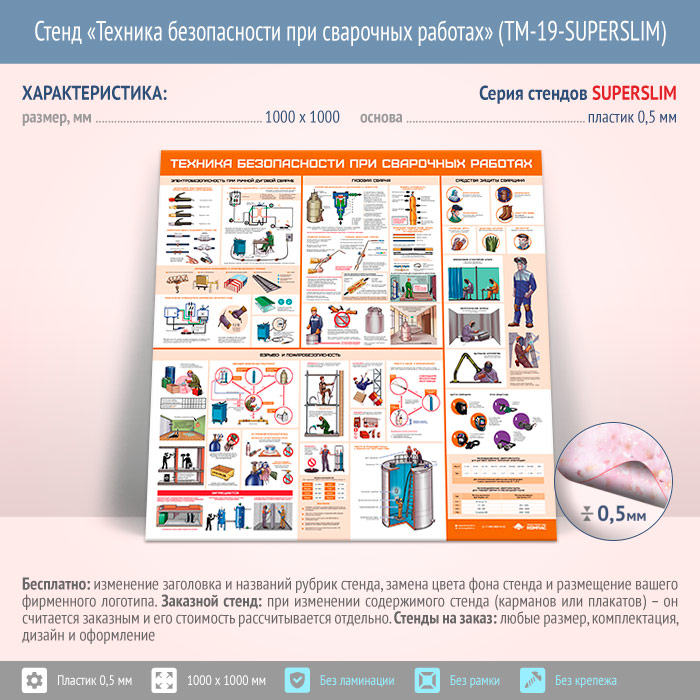 Стенд «Техника безопасности при сварочных работах» (TM-19-SUPERSLIM) в Ачинске купить