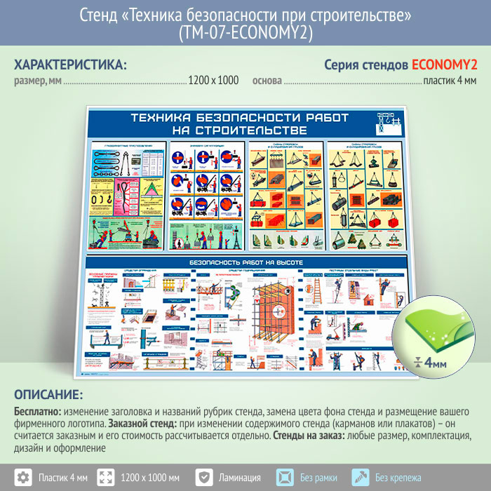 Стенд «Техника безопасности при строительстве» (TM-07-ECONOMY2) в Ачинске купить