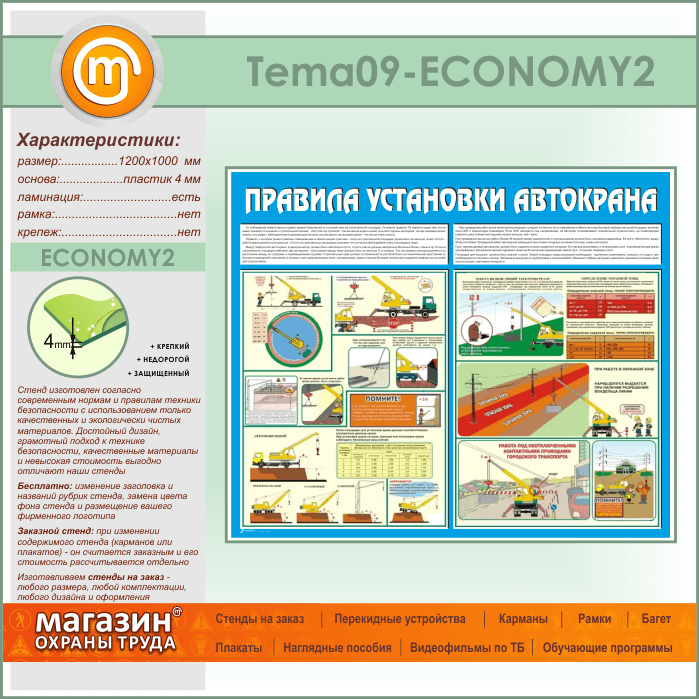 Стенд «Правила установки автокранов» (TM-09-ECONOMY2) в Ачинске купить