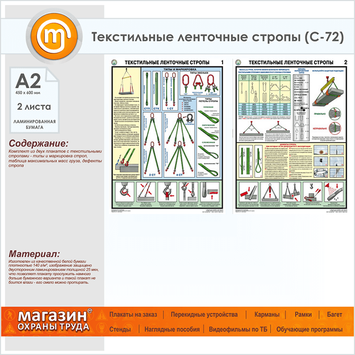 Плакаты «Текстильные ленточные стропы» (С-72, ламинированная бумага, А2, 2 листа) в Ачинске купить
