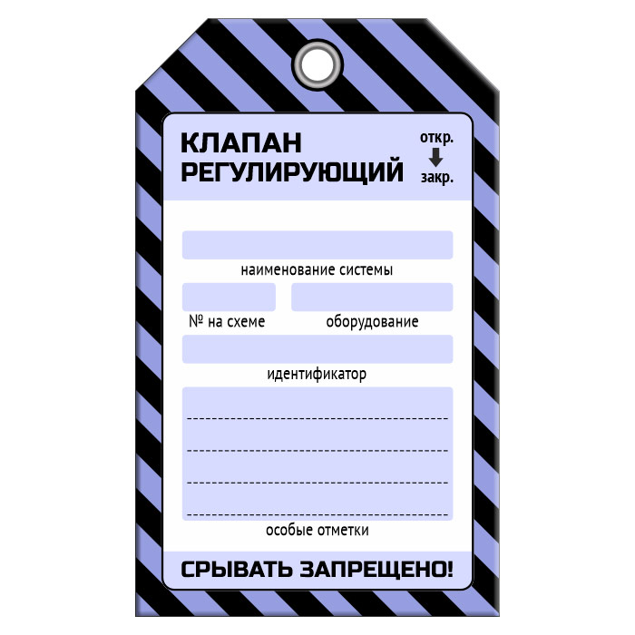 Бирка «КЛАПАН РЕГУЛИРУЮЩИЙ» (1 шт., односторонняя, пластик, 70х115 мм) в Ачинске купить
