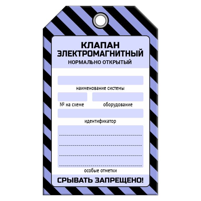 Бирка «КЛАПАН ЭЛЕКТРОМАГНИТНЫЙ НОРМАЛЬНО ОТКРЫТЫЙ» (1 шт., односторонняя, пластик, 70х115 мм) в Ачинске купить