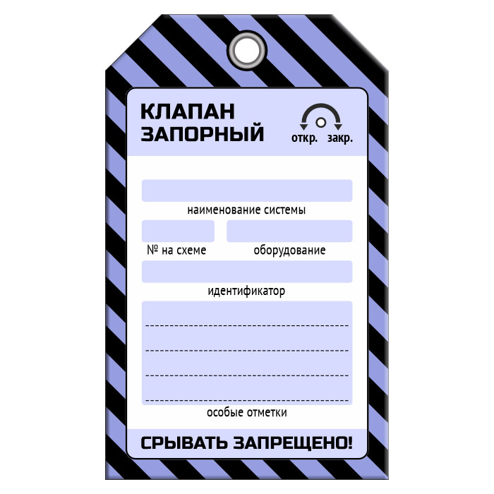 Бирка «КЛАПАН ЗАПОРНЫЙ» (1 шт., односторонняя, пластик, 70х115 мм) в Ачинске купить