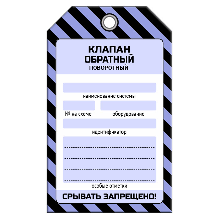Бирка «КЛАПАН ОБРАТНЫЙ ПОВОРОТНЫЙ» (1 шт., односторонняя, пластик, 70х115 мм) в Ачинске купить