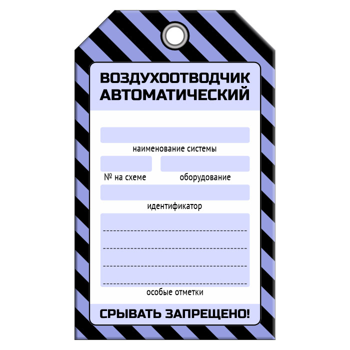Бирка «ВОЗДУХООТВОДЧИК АВТОМАТИЧЕСКИЙ» (1 шт., односторонняя, пластик, 70х115 мм) в Ачинске купить