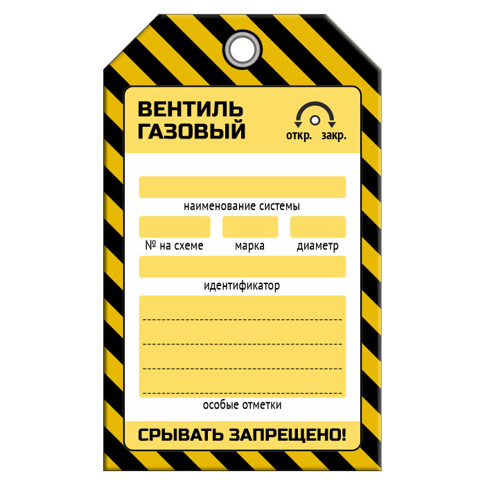 Бирка «ВЕНТИЛЬ ГАЗОВЫЙ» (1 шт., односторонняя, пластик, 70х115 мм) в Ачинске купить