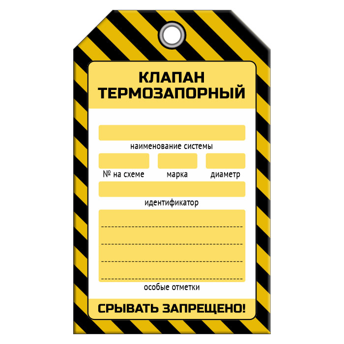 Бирка «КЛАПАН ТЕРМОЗАПОРНЫЙ» (1 шт., односторонняя, пластик, 70х115 мм) в Ачинске купить