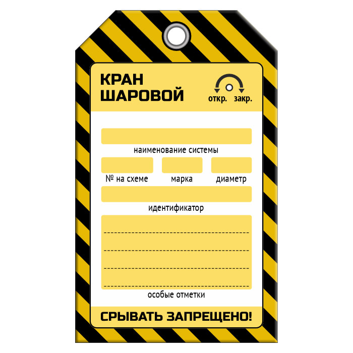 Бирка «КРАН ШАРОВОЙ» для газопровода (1 шт., односторонняя, пластик, 70х115 мм) в Ачинске купить