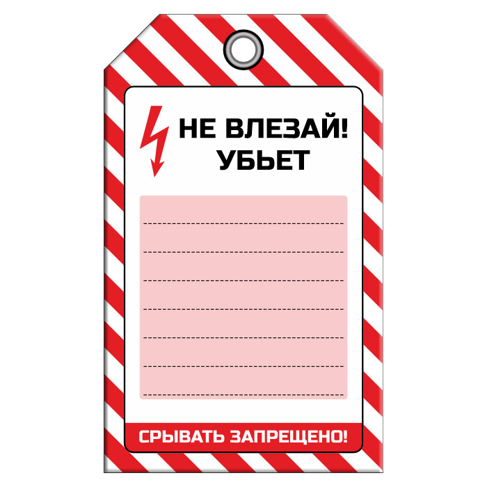 Бирка «НЕ ВЛЕЗАЙ! УБЪЕТ» (1 шт., односторонняя, пластик, 70х115 мм) в Ачинске купить