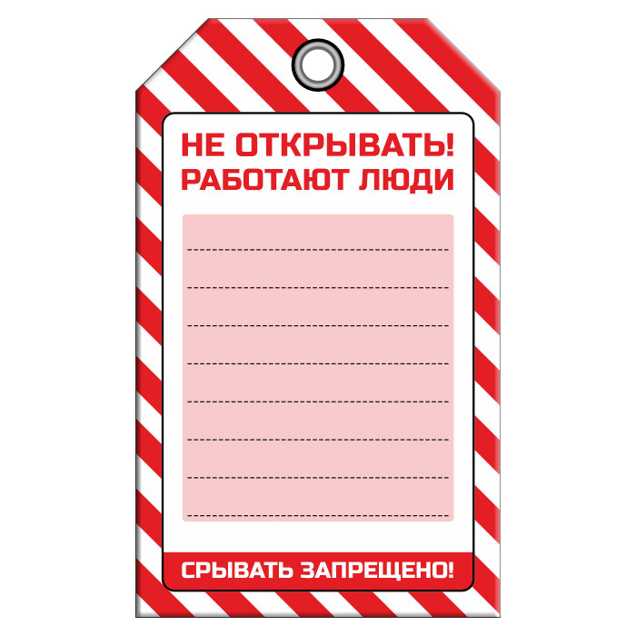 Бирка «НЕ ОТКРЫВАТЬ! РАБОТАЮТ ЛЮДИ» (1 шт., односторонняя, пластик, 70х115 мм) в Ачинске купить