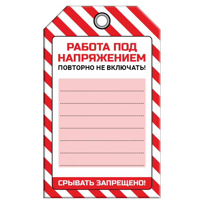 Бирка «РАБОТА ПОД НАПРЯЖЕНИЕМ» (1 шт., односторонняя, пластик, 70х115 мм) в Ачинске купить