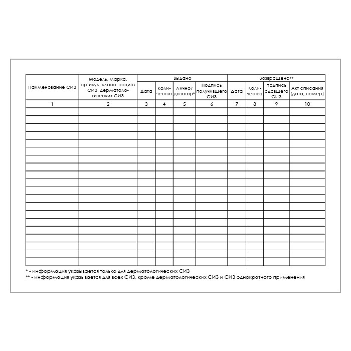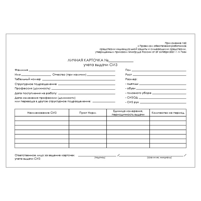 Карточка выдачи СИЗ (приказ Минтруда России от 29 октября 2021 г. №766н, упаковка 100 штук) в Ачинске купить