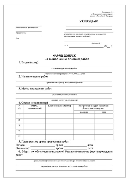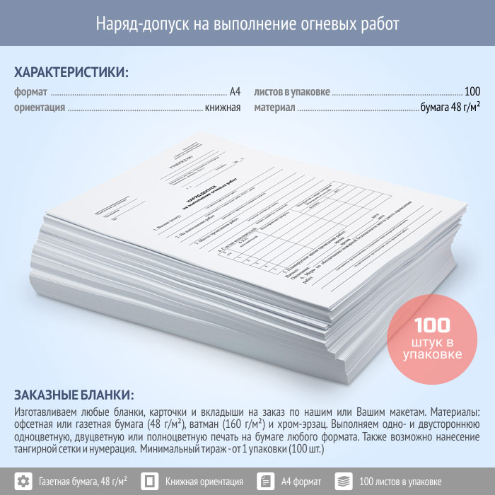 Наряд-допуск на выполнение огневых работ (упаковка из 100 штук) в Ачинске купить