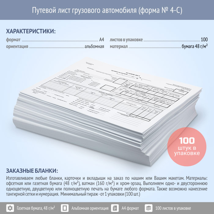 Путевой лист грузового автомобиля (форма № 4-С, упаковка из 100 штук) в Ачинске купить