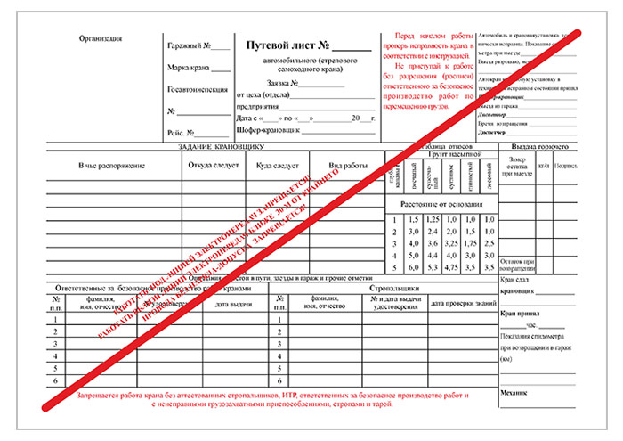 Путевой лист самоходного крана (упаковка из 100 штук) в Ачинске купить