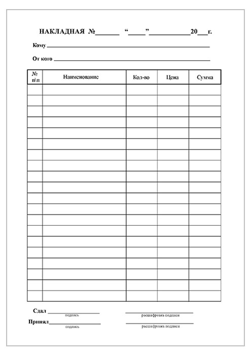 Накладная (упаковка из 100 штук) в Ачинске купить