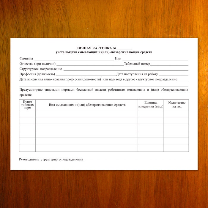 Личная карточка учёта выдачи смывающих и (или) обезвреживающих средств (упаковка из 100 штук) в Ачинске купить
