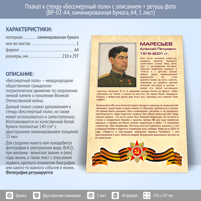 Плакат к стенду «Бессмертный полк» с описанием + ретушь фото (BP-02-A4, ламинированная бумага, А4, 1 лист) в Ачинске купить