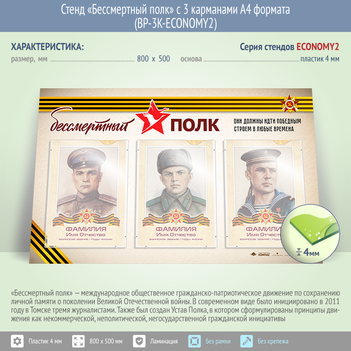 Стенд «Бессмертный полк» с 3 карманами А4 формата (BP-3K-ECONOMY2) в Ачинске купить