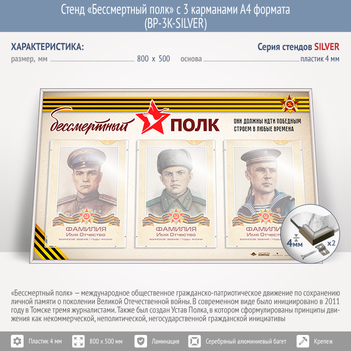 Стенд «Бессмертный полк» с 3 карманами А4 формата (BP-3K-SILVER) в Ачинске купить