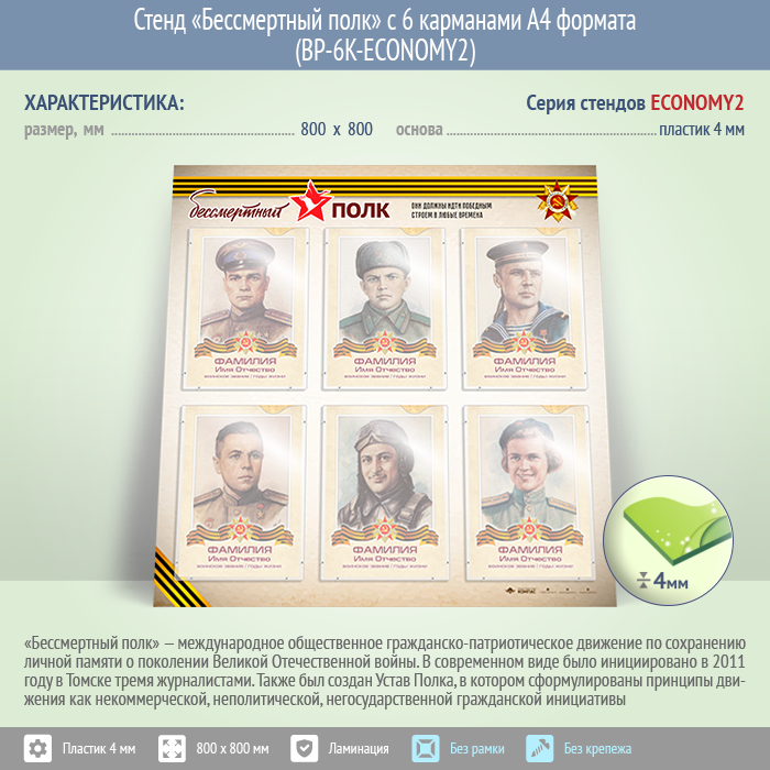 Стенд «Бессмертный полк» с 6 карманами А4 формата (BP-6K-ECONOMY2) в Ачинске купить