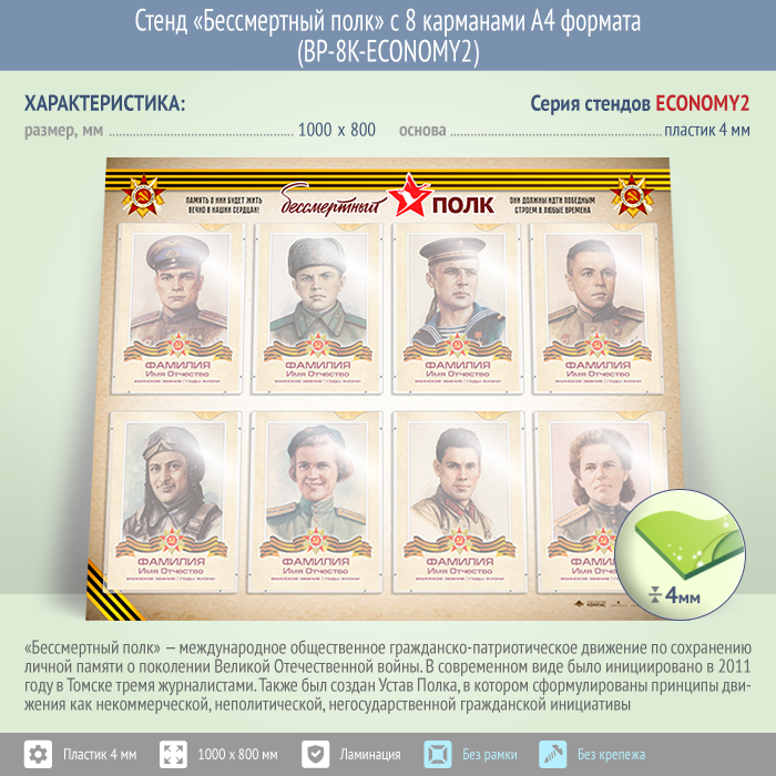 Стенд «Бессмертный полк» с 8 карманами А4 формата (BP-8K-ECONOMY2) в Ачинске купить