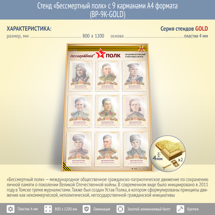 Стенд «Бессмертный полк» с 9 карманами А4 формата (BP-9K-GOLD) в Ачинске купить