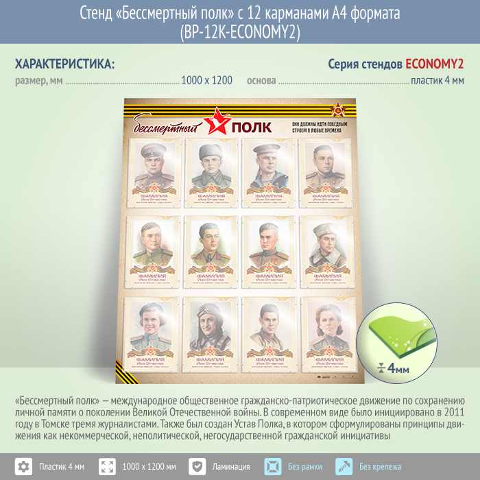 Стенд «Бессмертный полк» с 12 карманами А4 формата (BP-12K-ECONOMY2) в Ачинске купить