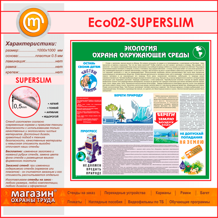 Стенд «Экология - Охрана окружающей среды» (ECO-02-SUPERSLIM) в Ачинске купить