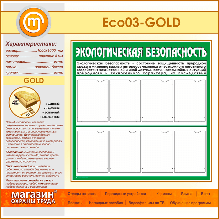 Стенд «Экологическая безопасность» с 8 карманами (ECO-03-GOLD) в Ачинске купить
