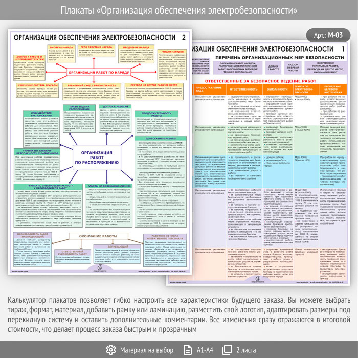 Плакаты «Организация обеспечения электробезопасности» (М-03, 2 листа) в Ачинске купить