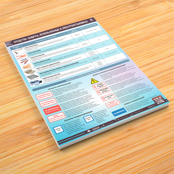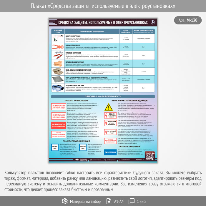 Плакат «Средства защиты, используемые в электроустановках» с QR (М-130, 1 лист) в Ачинске купить
