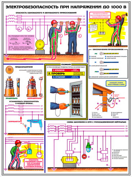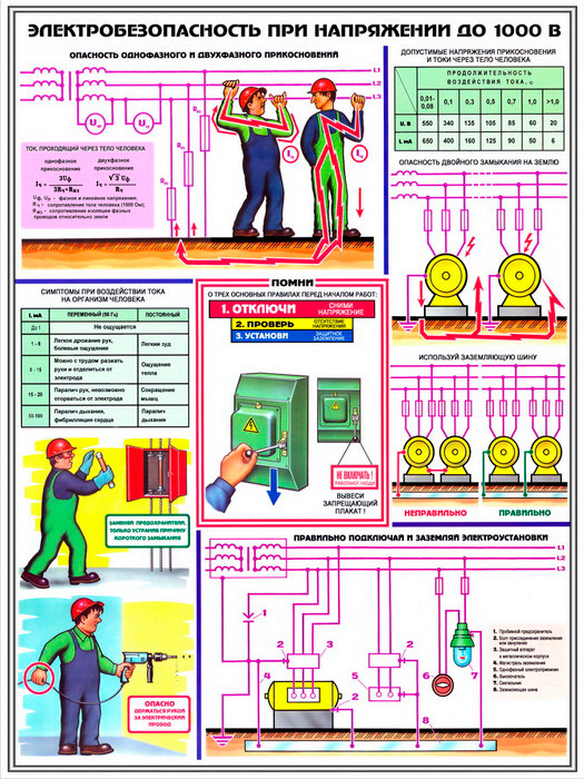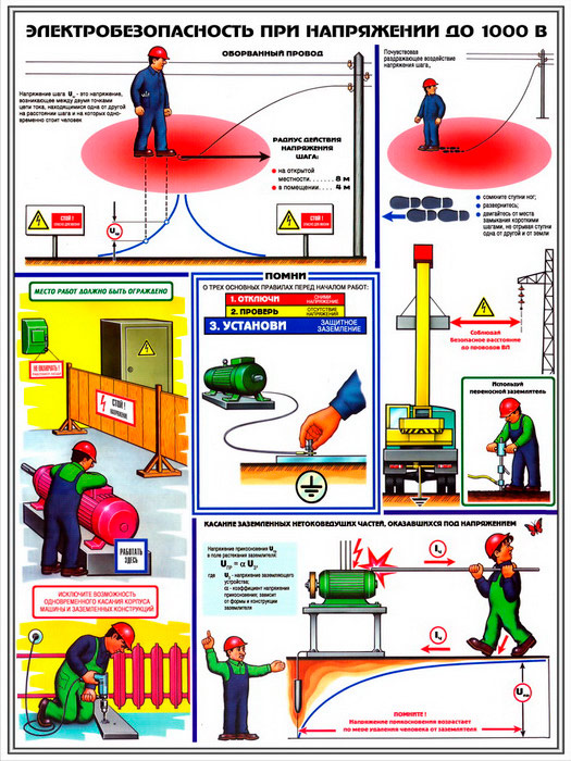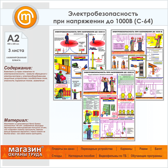 Плакаты «Электробезопасность при напряжении до 1000В» (С-64, ламинированная бумага, А2, 3 листа) в Ачинске купить