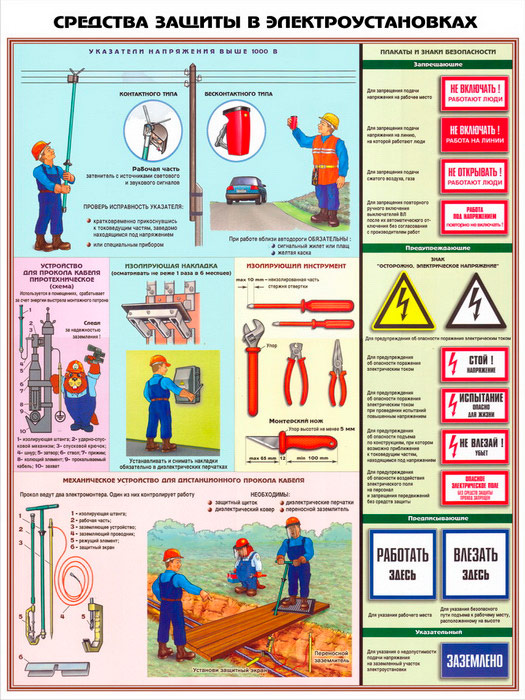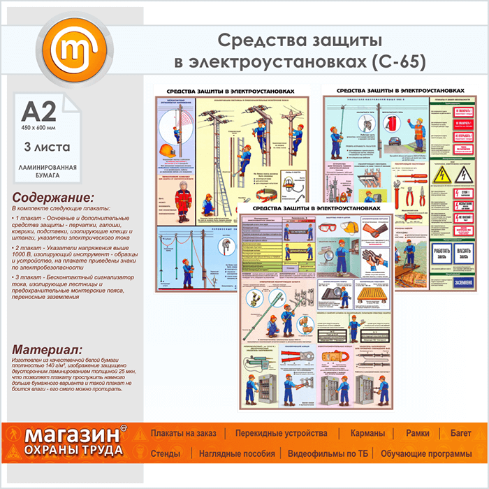 Плакаты «Средства защиты в электроустановках» (С-65, ламинированная бумага, А2, 3 листа) в Ачинске купить
