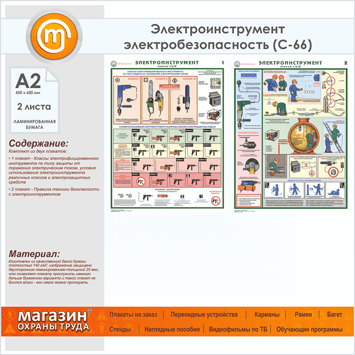 Плакаты «Электроинструмент - электробезопасность» (С-66, ламинированная бумага, А2, 2 листа) в Ачинске купить