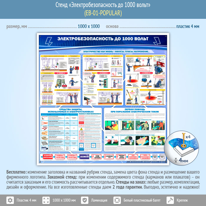 Стенд «Электробезопасность до 1000 вольт» (EB-01-POPULAR) в Ачинске купить
