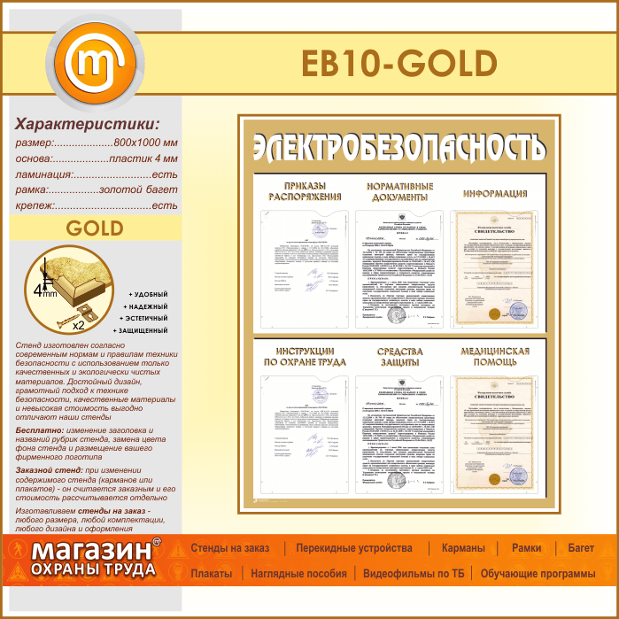 Стенд «Электробезопасность» с 6 карманами (EB-10-GOLD) в Ачинске купить