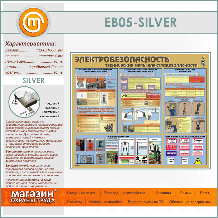 Стенд «Электробезопасность. Технические меры электробезопасности» (EB-05-SILVER) в Ачинске купить